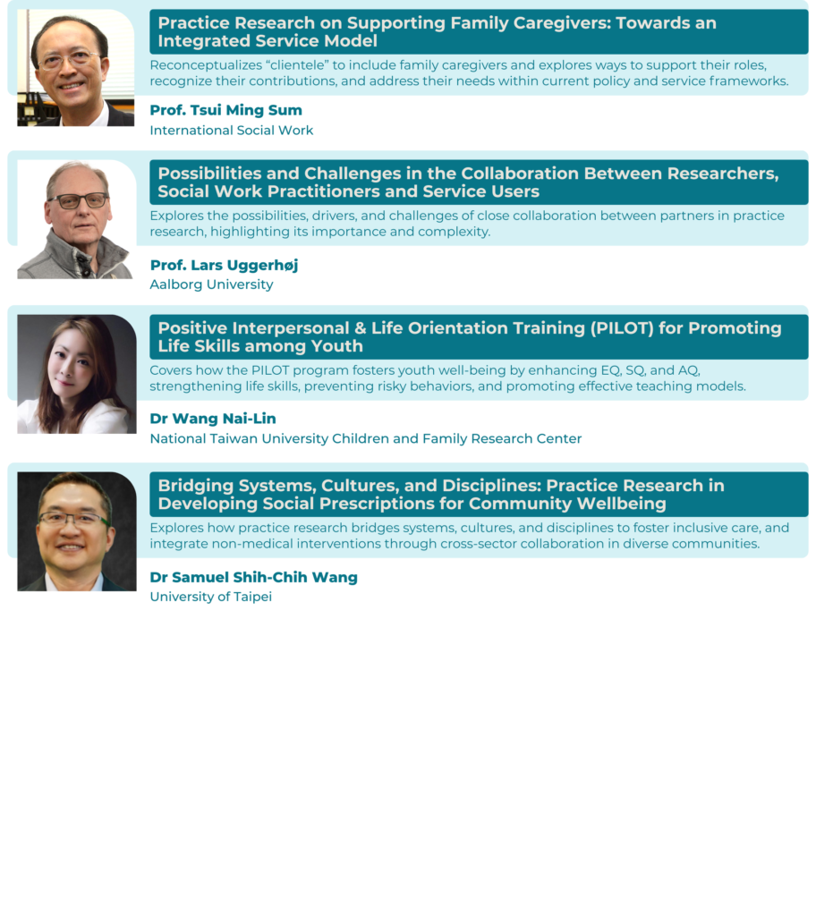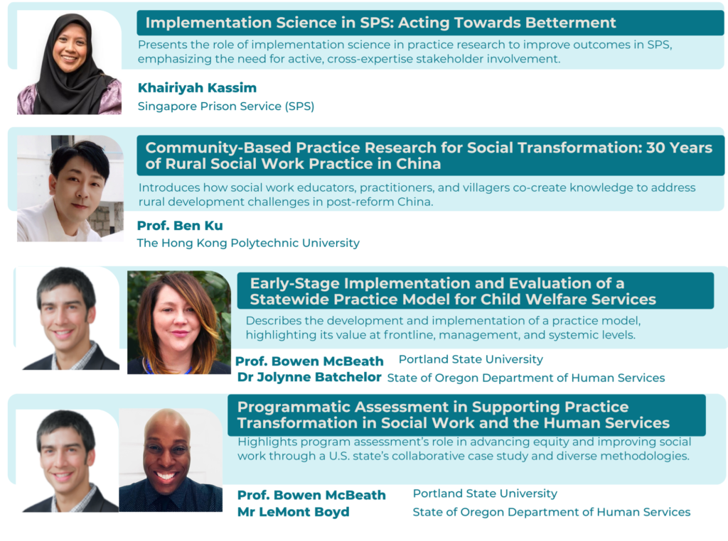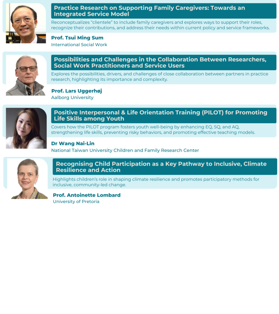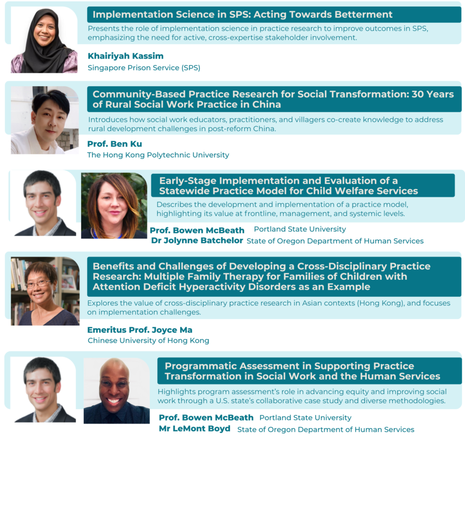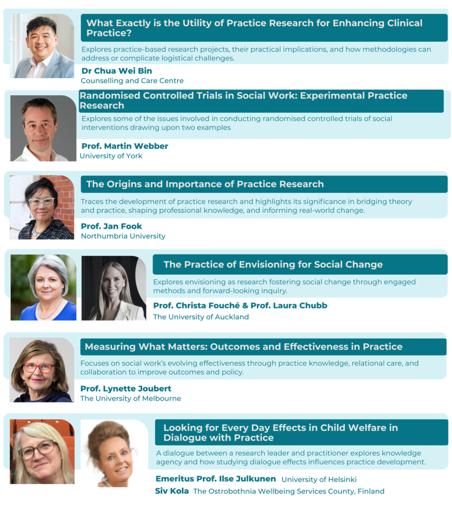 Each afternoon, the conference will feature parallel plenary sessions designed to provide focused insights into conducting practice research in social work, aligned with the conference theme.